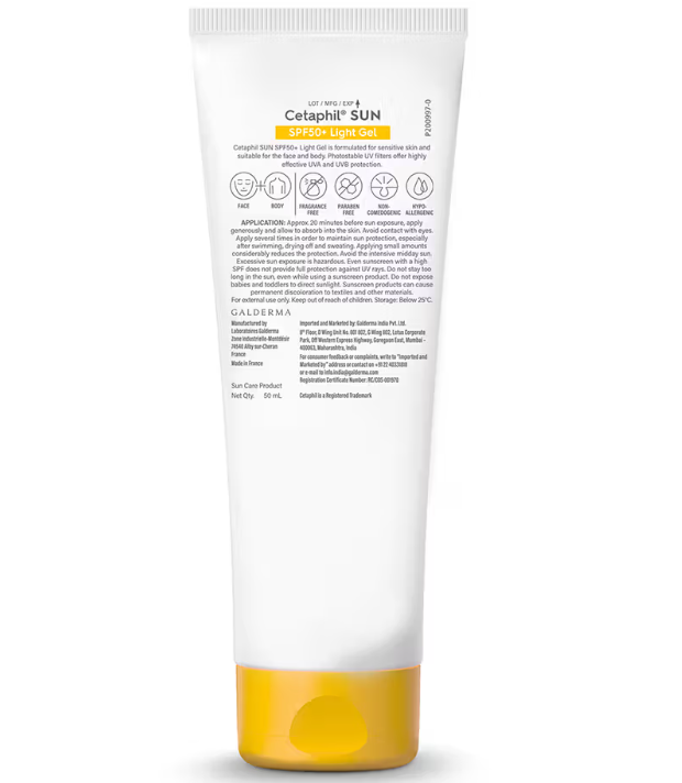 Cetaphil Sun SPF 50+ Light Gel Very High Protection Mineral Base for All Skin Types, Sensitive Skin